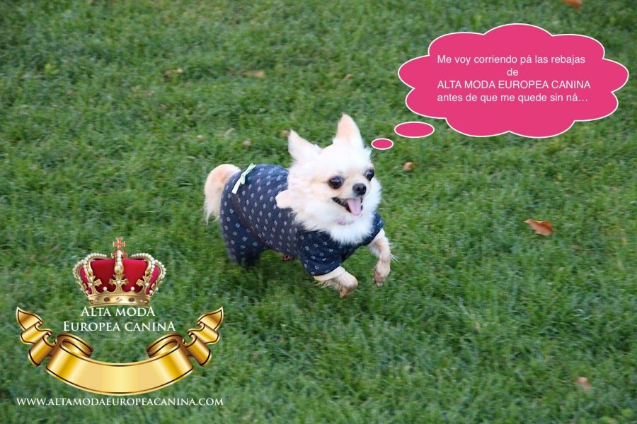 - Abrigos para perros en rebajas Aprovecha las rebajas de Alta Moda Europea Canina.com para adquirir abrigos de alta costura para tu perrito pequeño a un precio mucho mas reducido de lo habitual. Moda canina de lujo en rebajas, visita nuestra tienda canina online. Tel. 651 731 008