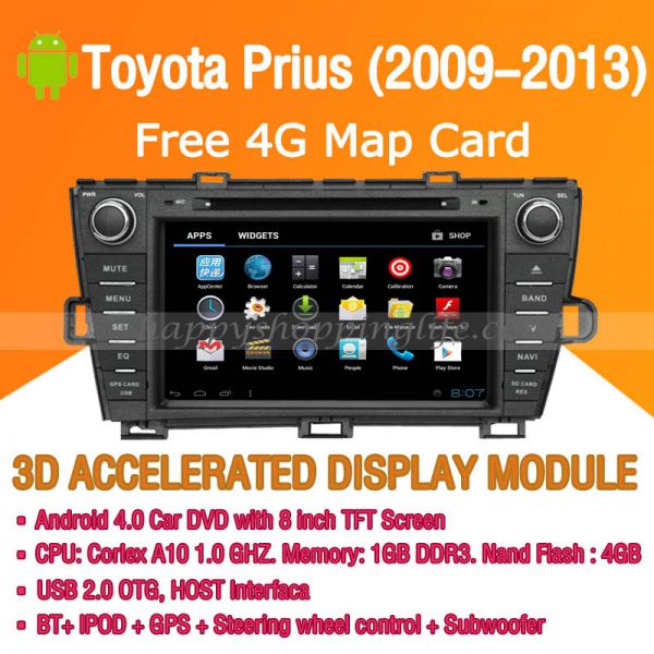 - Android Car DVD Player GPS Navigation Wifi 3G for Toyota Prius 2009-2013 Bluetooth Touch Screen Model:HSL-PC-233G Price: $415.25 Warranty: One Year Payment: PayPal, Bank Transer, Western Union, Money Gram Android 4.0 car DVD player for Toyota Prius 2009-2013 , auto multimedia with 7 inch touch screen, GPS navigation system with dual zone function, WIFI, 3G Internet Access, analog TV tuner built in, Radio with RDS, Bluetooth car kit, iPod port, USB, SD, support the original steering wheel controls