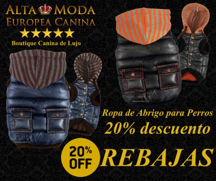- Aprovecha las Rebajas en Ropa para Perros Solo hasta el 28 de febrero tendras la oportunidad de vestir con moda canina de lujo a tu perro de raza pequeña por menos valor del habitual. Rebajas en ropa para perros de marca, 20, 30, 40 y hasta el 50% de descuento en algunas prendas. Ademas, promociones especiales de 2 x 1 en moda canina. Visita altamodaeuropeacanina.com y sorprendete. Tel. 651 731 008