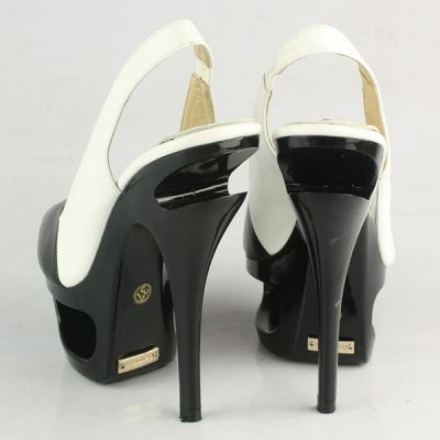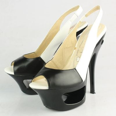 - blanco y negro de cuero sandalias peep-toe para damas www.dream-crane.com Color: blanco y negro. Material: cuero. Altura del taco: 150 mm aprox. Altura de la plataforma: 50 mm aprox. Vienen con bolsa de polvo, la tarjeta y la caja.