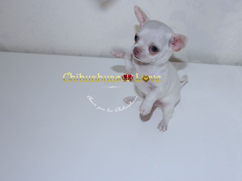- Cachorro Chihuahua Blanco Precioso cachorro chihuahua blanco de ojos azules en venta. Se puede reservar y se entregara cuando tenga las vacunas y coma perfectamente, alrededor de dos semanas. Con total garantia, pedigree de la RSCE. 1.500 euros. Luis.