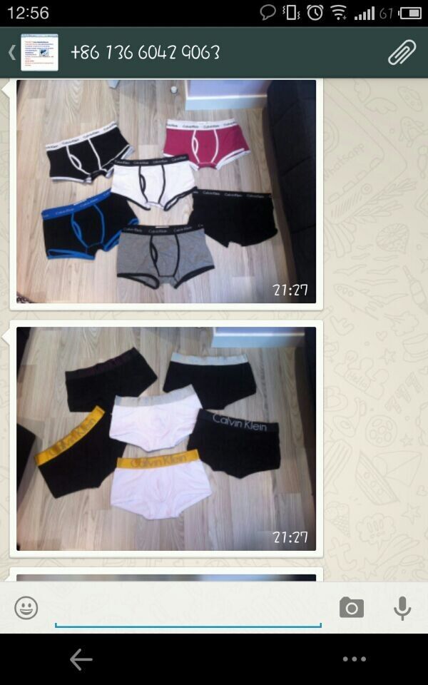 - Calvin Klein Underwear, muchos modelos están disponibles, para las mujeres y para los hombres. precio se basa en la cantidad de la orden. para la orden grande, el precio será mucho más barato. 100 unidades: 2.9 euros por cada 120 unidades: € 2.85 por cada 150 unidades: € 2.75 por cada 200 unidades: € 2,7 por cada 300 unidades: 2.65 euros para cada uno 400 unidades: € 2.6 por cada 500 unidades: 2.5 euros para cada uno Envío gratis !!!!! Por favor, póngase en contacto conmigo si está interesado. Email: ckes06@hotmail.com otro correo electrónico: 803@959b.com sitio web del producto: http://www.calzoncilloshombre.es/