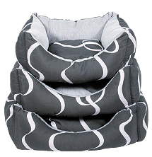 - Fantástica cama acolchada para perros, Disponible en 3 tamaños diferentes. Tiene un tapizado elegante que quedará perfecto en cualquier rincón de la casa. La cama tiene forma cuadrada y es super mullida y cálida. Tiene un bonito diseño con cintas grises sobre fondo negro. Incluye un cojín a juego para hacerla aún más confortable. Puede lavarse en la lavadora. Fabricada 50% en poliester y 50% en algodón. El relleno está compuesto por espuma de poliuretano. La cama tiene en su zona anterior una parte más baja para facilitar la entrada y salida; esto es especialmente importante para perros de edad avanzada que no levantan bien los pies al caminar y suelen tropezar con el más mínimo obstáculo. 19.90 EUR