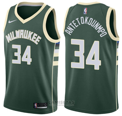 Camiseta Milwaukee Bucks Giannis Antetokounmpo NO 34 2017-18