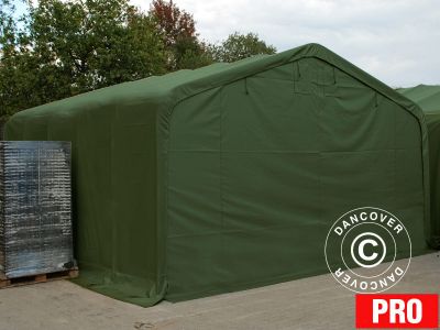 - Carpa para todo tipo de propósitos. Práctica de fácil montaje con fuerte tela de PVC Datos del producto - Excelente tamaño espacioso en forma de casa, ideal para almacenes pequeños y maquinaria - Lona extremadamente resistente PVC 660 gr. pr m² - Color: gris o verde - Encerado 100 % impermeable - La tela PVC ha sido probada según: M2, B1/B2 y DIN 4102 - Diámetro de tubería: 43x70 mm, 25 mm. - Construcción robusta con el marco de dos aguas - Acero protegido contra la corrosión con revestimiento pulverizado. - Fácil montaje con robustos tornillos - Altura lateral: 2,7 m - Alto: 3,6 m - Tamaño de puerta: 3 x 3,6 x 4 m (Altura lateral x Alto x Ancho) - Peso: 290 kg