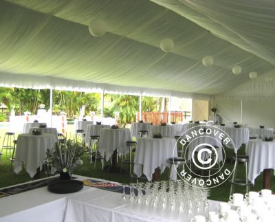 - Precio con IVA : EUR 11.462,14 Datos del producto - Carpa para eventos profesional 10 x 15 m - Construcción muy robusta, que soporta montaje y desmontaje frecuente - Armazón de la carpa en aluminio 6061 - T6 - Perfil portador de aluminio: 95 x 46 x 2,5 mm - Tela de carpa de poliéster con revestimiento de PVC resistente e impermeable 650 gr./m² - Cumple los requisitos de protección contra incendios, conforme a la norma DIN 4102 B1, M2 - Construcción bien planificada, que garantiza un montaje rápido - Extensión: 10 m - Altura lateral: 2,25 m - Altura de caballete: 3,70 m - Pendiente del techo: 18° - Tamaño de sección: 3 m - Componente más largo: 5,40 m - Posibilidad de ampliar la carpa con secciones de 3 m - Longitud máx.: ilimitada - Influencia máx. del viento: 33 m/seg. (fuerza del viento 9) http://www.dancovershop.es Tel.: 911 436 828
