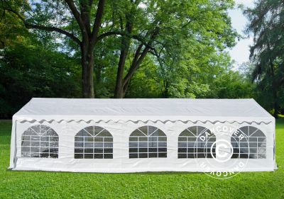 - Carpa de calidad en tela de PVC resistente con armazón galvanizado. Datos del producto - Popular carpa para fiestas 5 x 10 m - Ideal para aprox. 50-55 personas - Tubos galvanizados 42 mm x 1,2 mm / 38 mm x 1,1 mm - Tela de techo resistente, ignífuga, impermeable de PVC 500 gr./m² - Piezas laterales resistentes, ignífugas, impermeables de PVC 380 gr./m² - Ventanas en ambos lados longitudinales para buena luminosidad - Entrada en el extremo de fachada - Fácil montaje en aproximadamente 1 hora - Altura lateral: 2 m - Altura de caballete: 2,75 m - Plazo de entrega: 3-5 días laborables