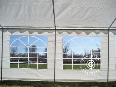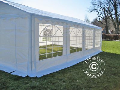 - Datos del producto - Popular carpa para fiestas 4 x 8 m - Ideal para aprox. 30 personas - Alternativa de precio reducido a los modelos más caros de PVC - Tubos galvanizados 38 mm x 1,1 mm - Tela de encerado resistente, 100 % impermeable, de Polietileno 200 gr./m²Ventanas en ambos lados longitudinales para buena luminosidad - Entrada en el extremo de fachada - Fácil montaje en aproximadamente 1 hora - Altura lateral: 2 m - Altura de caballete: 3,15 m - Plazo de entrega: 3-5 días laborables