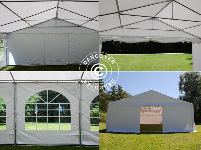 - Carpa para fiestas en calidad resistente con tela de PVC robusto, y armazón de acero galvanizado de 38/42 mm Datos del producto - Carpa para fiestas Plus 6x14 m PVC - Alternativa de precio razonable a las carpas de alquiler profesionales - Color: blanco - Tela de techo resistente, ignífuga, resistente al fuego, impermeable de PVC 500 gr./m² - Piezas laterales resistentes, ignífugas, resistente al fuego, impermeables de PVC 500 gr./m² - La tela PVC ha sido probada según: M2, B1/B2 y DIN 4102 - Los lados vienen a secciones de 2 metros con ventanas - Ventanas rústicas en ambos lados longitudinales para buena luminosidad - Entrada en ambos extremos de fachada - Armazón de acero galvanizado (38/42 mm) - Se suministran armazón de fundamento y picas de tierra para mayor estabilidad - Montaje fácil con tornillos de mariposa - Peso: 388 kg - Altura lateral: 2 m - Altura de caballete: 3,05 m