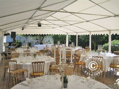 - Carpa para fiestas en calidad resistente con tela de PVC robusto, y armazón de acero galvanizado de 38/42 mm. Color blanco Datos del producto - Carpa para fiestas Plus 6x12 m PVC - Alternativa de precio razonable a las carpas de alquiler profesionales - Color: blanco - Tela de techo resistente, ignífuga, resistente al fuego, impermeable de PVC 500 gr./m² - Piezas laterales resistentes, ignífugas, resistente al fuego, impermeables de PVC 500 gr./m² - La tela PVC ha sido probada según: M2, B1/B2 y DIN 4102 - Los lados vienen a secciones de 2 metros con ventanas - Ventanas rústicas en ambos lados longitudinales para buena luminosidad - Entrada en ambos extremos de fachada - Armazón de acero galvanizado (38/42 mm) - Se suministran armazón de fundamento y picas de tierra para mayor estabilidad - Peso: 388 kg - Altura lateral: 2,00 m - Altura de caballete: 3,05 m
