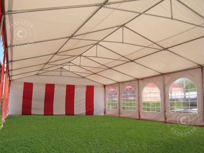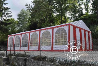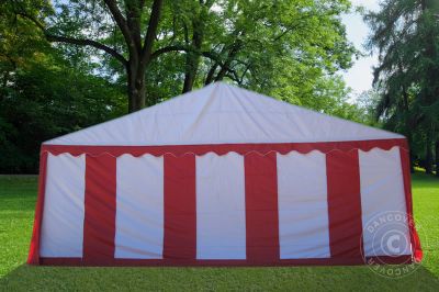 - Oferta con IVA : EUR 1.006,91 Datos del producto - Carpa para fiestas Plus 6x12 m PVC - Alternativa de precio razonable a las carpas de alquiler profesionales - Color: rojo blanco - Tela de techo resistente, ignífuga, resistente al fuego, impermeable de PVC 500 gr./m² - Piezas laterales resistentes, ignífugas, resistente al fuego, impermeables de PVC 500 gr./m² - La tela PVC ha sido probada según: M2, B1/B2 y DIN 4102 - Los lados vienen a secciones de 2 metros con ventanas - Ventanas rústicas en ambos lados longitudinales para buena luminosidad - Entrada en ambos extremos de fachada - Armazón de acero galvanizado (38/42 mm) - Se suministran armazón de fundamento y picas de tierra para mayor estabilidad - Peso: 388 kg - Altura lateral: 2,00 m - Altura de caballete: 3,05 m http://www.dancovershop.es Tel.: 911 436 828