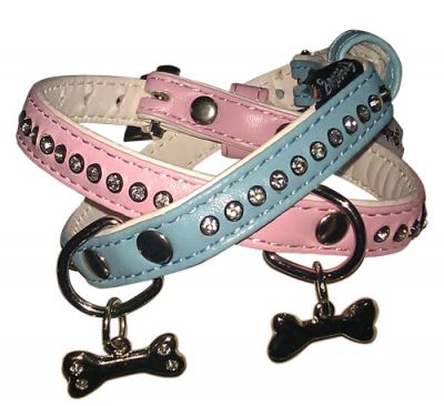 Collar polipiel rosa con strass brillantes para perras elegantes