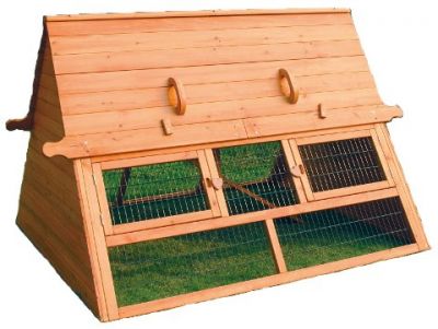 - Excelente conejera calidad alemana.con forma de tienda de campaña con un amplio patio exterior y habitaciones elevadas perfecta para tener a tus conejos de forma cómoda y segura en el exterior de tu casa. . Esta conejera con madera tratada para resistir el agua tiene en su parte superior las habitaciones a la que los animales acceden mediante una rampa, aislando a los animales del frío y proporcionando un lugar cálido y seguro donde descansar por las noches. En el parque inferior tus conejos podrán pasearse y tomar el aire y el sol relajadamente. La conejera está fabricada con listones de madera tratados de gran calidad y resistencia. La zona dormitorio está en la zona más elevada para evitar el frío y la humedad del suelo. Tiene dos grandes puertas abatibles que facilita el acceso a los animales y la limpieza de la conejera. El techo a dos aguas favorece el desagüe del agua de la lluvia previniendo las humedades. El patio tiene rejas de alambre resistente y puertas con pomos en form