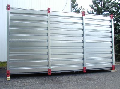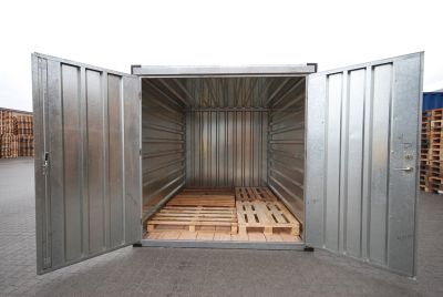 - Oferta con IVA : EUR 1.347,50 Datos del producto - Contenedor de almacén - Fabricado con láminas de 0,75 mm cubiertas de zinc - Peso: 450 kg. - Dimensiones exteriores: LxBxH (largo - ancho - ancho) 300 cm 220 cm 220 cm - Dimensiones interiores: LxBxH 284 cm 200 cm 200 cm - Dimensiones después de desmontar: LxBxH 300 cm 220 cm 38 cm - Dimensiones de la entrada 193 x 193 cm, con la apertura total de la puerta - Perfiles portátiles fabricados de láminas 2 mm cubiertas de zinc - Suelo fabricado de peldaños 35 mm o de plástico, del grosor de 12 mm - Los contenedores pueden ser empaquetados en plano, para reducir los costes de transporte.
