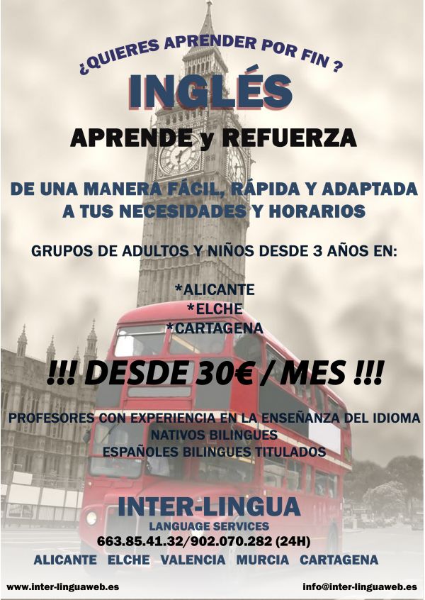 - INTER-LINGUA SERVICES Empresa especializada en enseñanza de Idiomas y traduccion , ofrece cursos de Idiomas todo el año en su propia localidad mediante su Ayto , Colegios o en nuestros centros de formacion Todo el Levante Mediterraneo