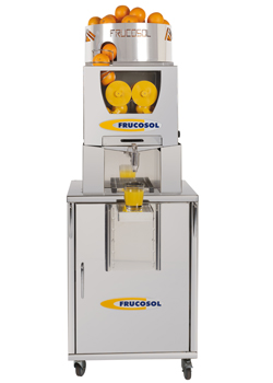 - Self-service de Frucosol destaca dentro del mundo de las exprimidoras de zumo por ser una exprimidora compacta en sistema automático de marcha/paro mediante accionamiento del grifo. Está fabricada en acero inoxidable brillo de alta calidad. Incluye mueble en acero inoxidable con ruedas y cubo para residuos.Dispone también de bandeja posavasos regulables en altura para el llenado de recipiente de distintas capacidades. Se recomienda para Buffets, Hoteles, Universidades, Areas de servicio , Aereopuertos, supermercados, hipermercados y Fruterias.