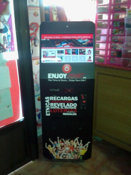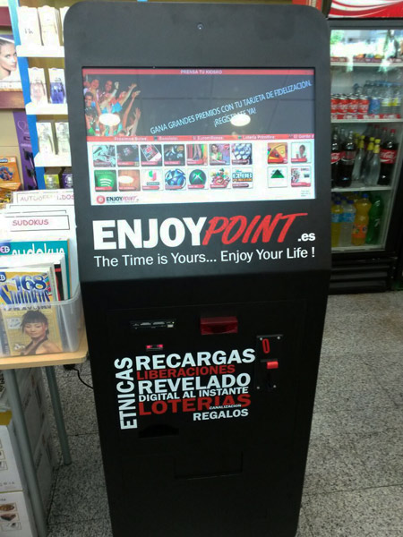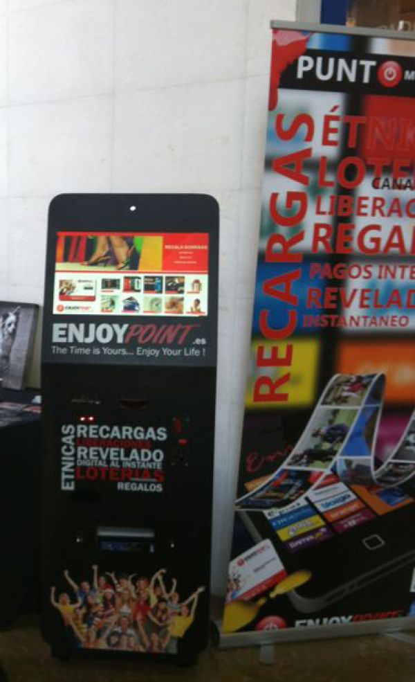 - ENJOYPOINT PRINT / TLF. 961438127 / Email: info@enjoypoint.es Kiosco fotográfico multiservicio EnjoyPoint Print. Ofrezca a sus clientes más servicios en su establecimiento. Los servicios que ofrece son Impresión de fotos, Telefonía (recargas, tarjetas étnicas, liberalización de móviles), Pines, consolas y juegos, Música y Tv, Software, central de compras y regalos personalizados, Medios de pago (Paysafecard)… Dispone de: pantalla táctil, para un manejo fácil e interactivo (LED de 22”), lector de código de barras y lector de tarjetas y de DNI, ventilador silencioso, billetero con apilador y monedero con hucha, doble cerradura de seguridad, incluye tarjetas de fidelización para sus clientes. Apta para cualquier tipo de establecimiento (bar, kiosco, estanco, supermercado, locutorio, papelería, tienda de informática...) Solo necesita una toma de luz y conexión a internet de banda ancha. Financiada por 119€ + IVA al mes o al contado.