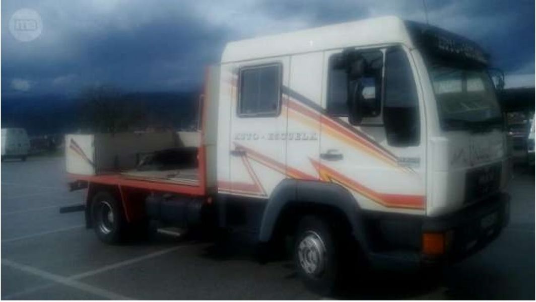 - Man modelo 11-224 doble cabina para 7 plazas, con caja laterales abatibles y quinta rueda para enganchar remolque, camión en perfecto estado interior exterior, solo 97361 kilómetros, los kilómetros son reales, camión nacional, único propietario se vende por cierre de negocio. camión preparado para autoescuela. peso maximo de arrastre con remolque acoplado 24000 kilos telefono 643309458