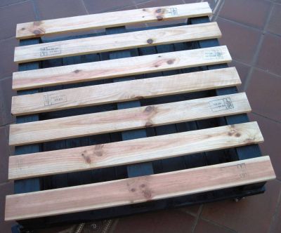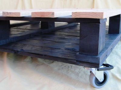 - Mesa grande de 1m x 1m de estilo industrial, comprada en tienda de diseño de BCN. Hecha de palet, pintura apta para interior/exterior. 2 sobres, uno superior color madera natural y otro inferior, en color blanco crudo. Grandes ruedas pivotantes con freno (75mm). Si vives en Barcelona o cercanías, puedo llevar a casa.