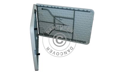 - Mesa Plegable (1 pieza) Datos del producto - Ligera mesa plegable (1 unidad.) - Se pliega en llano, lo que facilita el almacenamiento - Tubos de acero pintados en polvo - El tablero de la mesa hecho de polietileno del espesor muy alto - Color: blanca/gris - Dimensiones (desplegada): 242,8 x 76 x 74,5 cm (L x W x H) - Dimensiones (plegada): 122 x 76 x 10 cm (L x W x H) - Peso: 23 kg/pieza