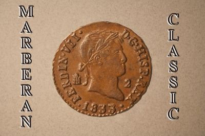 MONEDA DOS MARAVEDIS DE COBRE DE FERNANDO VII DE 1833 (SIN CIRCULAR)