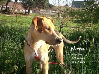 - Nora actualmente está en una casa de acogida con Lui, un podenco adoptado en nuestra asociación. Cuando la rescatamos tenia mucho miedo, no sabemos lo que le habrá pasado, tambien estaba algo desnutrida y esta en proceso de recuperar peso. Sale a pasear con correa sin problemas, no tira. Esta en proceso de coger algo mas de confianza confianza. Los ruidos y las motos le ponen algo nerviosa pero poquito a poco va superándolo. En casa se porta muy bien, no muerde nada y se queda perfectamente sola, es muy cariñosa y le encanta darte besitos y que le hagan mimos, le gusta mucho el contacto con las personas, al principio cuando no conoce es un poquito recelosa, pero al rato cuando ya ve que no hay “peligro” te busca para que estés por ella…. La verdad que es un solete!!