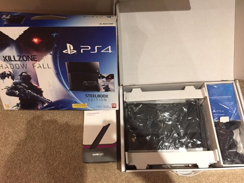 - Se trata de un nuevo Sony PlayStation 4 Batman: Arkham Knight Bundle 500 GB Jet Negro consola y viene con la caja de fábrica original y las instrucciones. La caja fue abierta para tomar cuadros, para asegurar contenido y condición. (Ver fotos) No dude en ponerse en contacto conmigo con cualquier pregunta. Incluye: Sistema de PlayStation 4 de 500 GB, 1 Controlador inalámbrico DualShock 4, Cable de alimentación de CA, Cable HDMI, Cable USB 2.0, Auricular con cable mono y una copia física de Batman: Arkham Knight