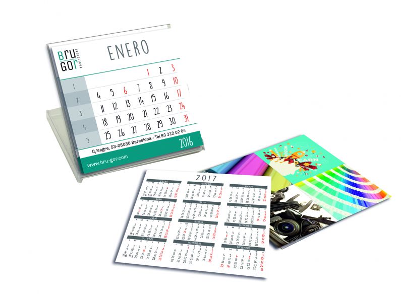 - En Bru-gor Publicidad, somos una agencia especializada en diseño y creatividad, servicios de impresión y fotografía. Con la recta final del 2015, llega el momento perfecto para planificar ya los calendarios para empresas del próximo año. Ofrecemos una oferta especial de impresión de calendarios corporativos de 2016 en tres formatos. Calendarios de bolsillo (8,5x5,5cm), 200 unidades a 42,88 euros. Calendarios de sobremesa con espiral (21x10cm), 100 unidades a 234,78 euros y por último, calendarios tamaño mini cd (9x9cm), 50 unidades por 81,70 euros. ¿A qué estas esperando para encargar tu calendario para el próximo año? Desde Bru-gor, queremos ayudarte con un producto efectivo y directo. Desde hace más de 35 años, desarrollamos nuestra actividad económica de diseño publicitario aportando siempre innovación y profesionalismo, además de una alta capacidad creativa. Comunicamos ideas que mejoren la imagen, proyecten las marcas de nuestros clientes y sitúen a la empresa en el mercado.