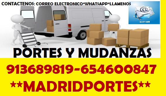 - Opcion ahorrativa: 91(36)89+819 para tus portes o mudanzas en rivas vaciamadrid y alrededores:madrid centro, arganzuela, moratalaz, vallecas, chamberi, san blas, chamartin, barrio de salamanca, etc. A precios economicos*autorizados mudanzas economicas en retiro desde: 150eur(profesionales del sector) madridportes empresa low cost::: llamenos 91/3689*819 economicos Atención: lunes a viernes de: 9h a 21h sabados de: 10h a 14h