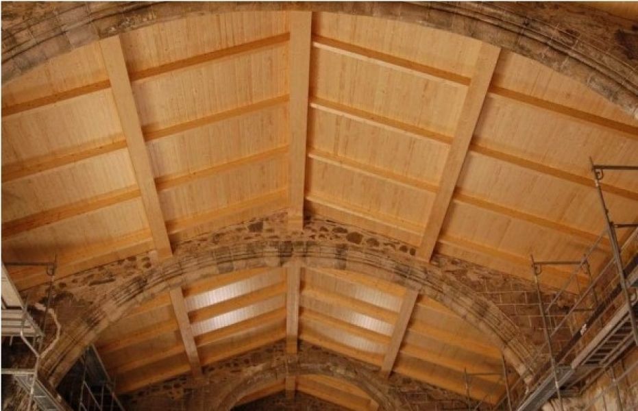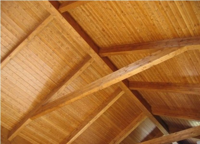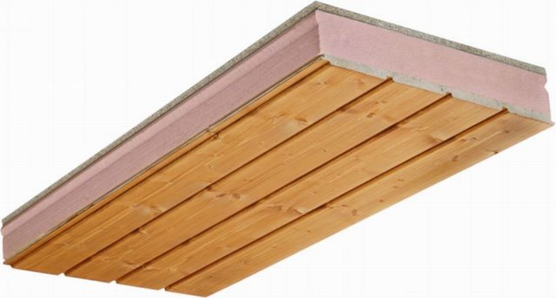 Panel sándwich termo-aislante con acabado en medera de abeto barnizado