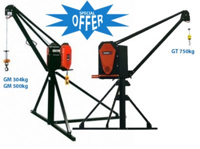 - ACG EQUIPOS, Pluma grua certificadas La Mini Grua GT 300- 500, con capacidad hasta 750 kg de carga se fabrica de acuerdo a las normas europeas de seguridad y calidad, garantizando un producto final de estándar. Su diseño y materiales utilizados en su fabricación hacen de Mini una grúa ligera, fácil manejo e instalación, lo que es una solución ágil y eficaz para las elevaciones de hasta 300-500-750 kg, con una excelente relación calidad-precio VOLTAJE V. 220/380/400 FRECUENCIA Hz. 50/60 POTENCIA CV/Kw 4/2,94 CARGA MÁXIMA Kg. 300- 500- 750 VELOCIDAD m/min 20 TAMBOR mm. 140 DIÁMETRO CABLE mm. 8 LONGITUD CABLE m 50 CARGA DE ROTURA Kg. 4930 DIMENSIONES cm 70X50X52 DIMENSIONES EMBALAJE cm 70X50X52 PESO Kg. 150 PLUMA DE 500 KG tel. 3103083535 fax 571 6185405