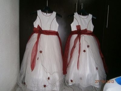 - vendo dos vestidos de dama de honor , los dos de la talla 12 , sin estrenar , con sus complementos que son diademas y pasadores , y dos pares de manoletinas , un par del nº 35 y el otro par del nº36 todo por 120€ ,tambien lo venderia por separado