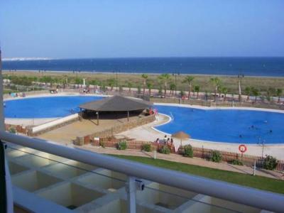- Alquilo apartamento de nueva construcción en Almerimar (Almería). 1ª línea de playa, delante de una gran lago navegable, y a 10 minutos de un campo de golf de 27 hoyos Urbanización de 40.000 m2, con una gran piscina de unos 65 m, otra más pequeña para niños tipo jacuzzi, 4 pistas de padel, mesa de ping-pong, parque infantil, y amplias zonas verdes. Apartamento de 81 m2 construidos, con un salón de 24 m, una habitación de matrimonio, otra doble, cocina totalmente amueblada, un baño completo y una terraza de 11 m2. Contiene hasta 4 4 ventiladores de techo, radiadores térmicos, TV plana de 32", TDT, DVD, y Home cinema Precio a convenir según temporada y duración