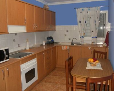 - Magnífico piso,casi a estrenar de 102,15 m2, en edificio de 3 plantas (contando la baja) más 2 plantas de garaje.Amplio ascensor que va desde el garaje hasta la azotea. Vistas panorámicas. Puerta de entrada blindada. Suelos en su mayor parte de gres. Toda la carpintería exterior es de aluminio lacado en blanco con contraventana (inclu- yendo los balcones) y la carpintería interior en madera. El piso consta de tres dormitorios (2 de ellos con vistas al mar); un armario empotrado con 6 puertas (vestido); un balcòn en el dormitorio principal; gran salón con balcón con vistas a la calle principal; Dos baños completos (uno con bañera y otro con plato ducha); estupenda cocina en forma de L amueblada y equipada con horno, vitrocerámica y extractor; garaje con capacidad para 2 coches (21 m2); cuarto pileta con tendedero-terraza de 28,73 m2. Precio: 160.000 € Teléfono: 828021000 (dejad recado en contestador indicando nombre y nº de teléfono)