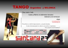 - TANGO ARGENTINO SANTANA27-BOLUETA-BILBAO*LOS LUNES avanzado DE 20 a 21,30.*LOS MARTES INTERMEDIO DE 18,30 a 20,00.*LOS MARTES AVANZADO DE 20,00 a 21,30.Máximo 10 parejas por grupo o clase.PRECIO.-Un horario o clase 35 Euros al mes.Dos horarios o clases 55 Euros al mes.Clases sueltas 15 Euros.Nota.- si se pierden clases se pueden recuperar en otros horarios.Los segundos miércoles de cada mes TANGO-GUATEQUE de 19,00 a 22,00.(Entrada y aparcamiento gratis)(comenzamos el 9 de Septiembre, con la presentación del nuevo curso). CLASES LUNES Y MARTES EN SANTANA- MIÉRCOLES EN GETXO- JUEVES EN DEUSTO Y VIERNES EN ASTRABUDUA.Más información en www.bilbaotango.com clases en Santana27-Bilbao .www.santana27.com -Os esperamos consultas 610461052 y i.gil1949@telefonica.netIgnacio