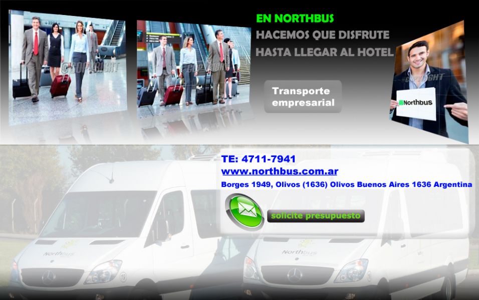 - Nuestros servicios se componen de viajes de casamientos, viajes de cumpleaños, viajes de espectáculos, viajes al aeropuerto, viaje a Ezeiza, viaje al Puerto de Frutos, viaje de turismos a los principales lugares de Buenos aires. Si está buscando alquiler de combi minibús para realizar un recorrido turístico por Buenos Aires, NORTHBUS es la empresa adecuada para realizar su traslado. Solicite un presupuesto personalizado y a su medida, consultas@northbus.com.ar Alquiler de combis y minibuses. Viajes programados a todo el país, unidades disponibles desde 12 a 60 personas. Solicite presupuesto de alquiler de minibús y combis. http://www.northbus.com.ar/