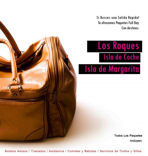 - Viajes * Paquetes Turisticos Con Destino VENEZUELA ( Los Roques / Canaima. Salto Angel ) 5 Noches todo Incluido(Comidas + Bebidas + Tours + Seguro + Guias pro, Alojamientos + Boletos Aereos) desde 840.USD.p/p. * Isla de Margarita/ Isla de Coche - Venezuela, Paquetes Todo Incluido + Fullday Tours (spa, buceo, catamaranes, jeep safari) * Alquileres de casas Vacacionales en Isla de Margarita (Minimo 5 Noches) cap max. 4/8 Pax.
