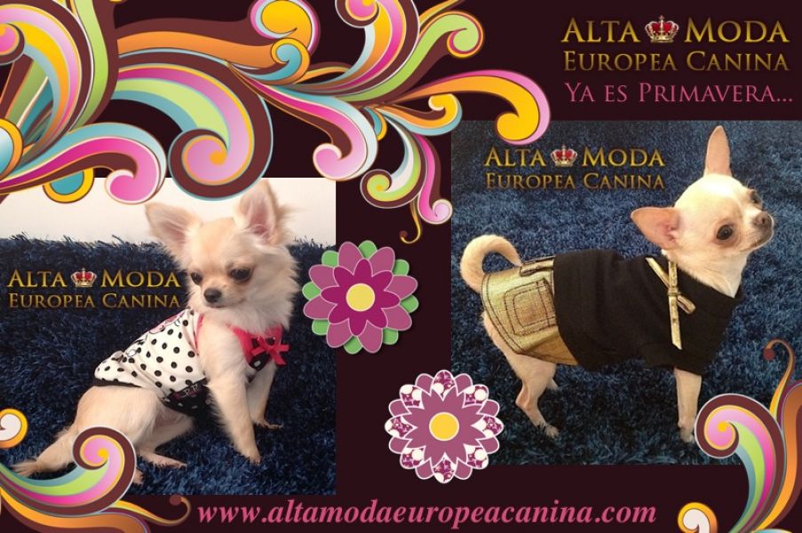 - Vestidos para perritas. Si tienes una perrita de raza pequeña te la vestimos como una autentica Top Model Canina con nuestros vestidos para perros que son unicos e inimaginables hasta que se los pones. Tenemos nuemrosos vestidos para perritas en stock permanente, elige la talla y modelo que se adpte a tu perrita y sacala a pasear. Tanbien la puedes llevar a celebraciones familiares vestida, sereis el centro de atencion. Visitanos en altamoda europeacanina.com Tel. 651 731 008