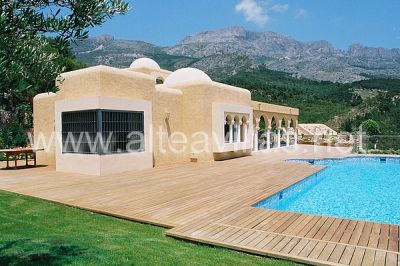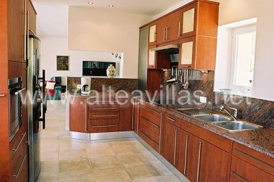 - Este sueño del lujoso Oriente frente al Mediterráneo esta ubicado en una urbanización muy tranquila en Altea. Las vistas panorámicas tanto a la bahía de Altea y a las montañas estan maravillosas. A supermercados, restaurantes como la playa son solamente pocos minutos con coche. La parcela tiene aproximadamente 1.830 m² y la superficie aprox. 400 m². La villa consta de un amplio salon-comedor, 4 dormitorios con cuartos de baño en suite, un aseo, cocina americana y lavadero. El dormitorio principal cuenta con un vestidor y un gran baño en suite con bañera frente a estupendas vistas panorámicas como ducha hidromasaje. El apartamento de huéspedes tiene salon, 2 dormitorios con cuartos de baño y cocina americana. Hay calefacción por suelo radiante (¡frío y calor!), vidrio de seguridad, persianas automáticas, peatonal automático con interfono y sistema de alarma. Hay un garaje para 2 coches con acceso directamente a la vivienda, un jardín y piscina desbordante climatizada.