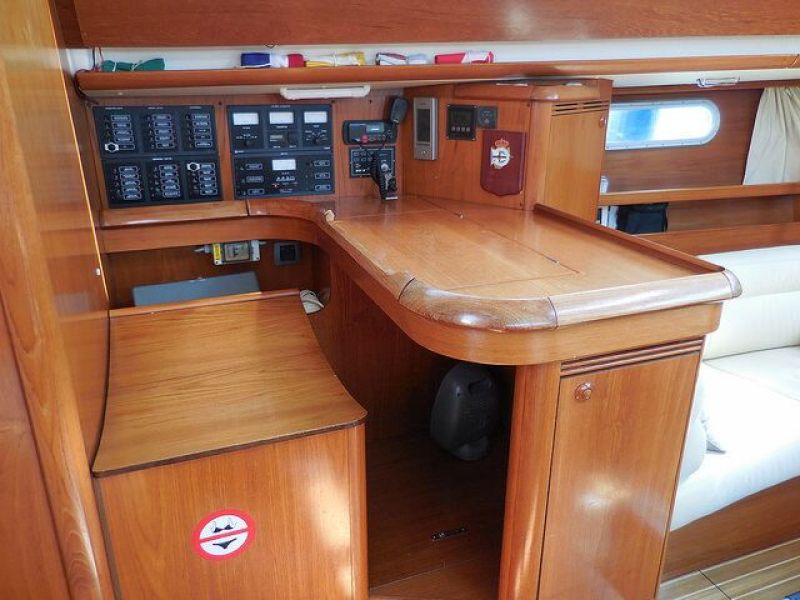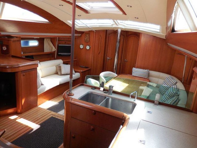 - Jeanneau 49 DS. Sun Odyssey - Velero Matricula 6ª Año 2006 Precio PVP.148.500 € Eslora y manga 14.80 x 4.50 Poliéster Motores 1 Yanmar Potencia total 100cv Mesa en salón Motor de 4 T. Diesel Inyección Interior Cap. Combustible 240 L Cap. Agua 720 L Agua caliente Nº de pasajeros 10+2 4 camarotes dobles ducha Sonda Piloto automático Toldo sol en bañera Radar VHF GPS Radio CD TV 220 V. Cargador baterías Hélice de Proa Molinete eléctrico Balsa salvavidas Neumát. y motor aux. 1 Bomba achique Veloc. crucero 7 n Veloc. máxima 8 n Nevera eléctrica Cocina Microondas Grupo Electrogeno de 6CV. Sistema de toldos en bañera completa